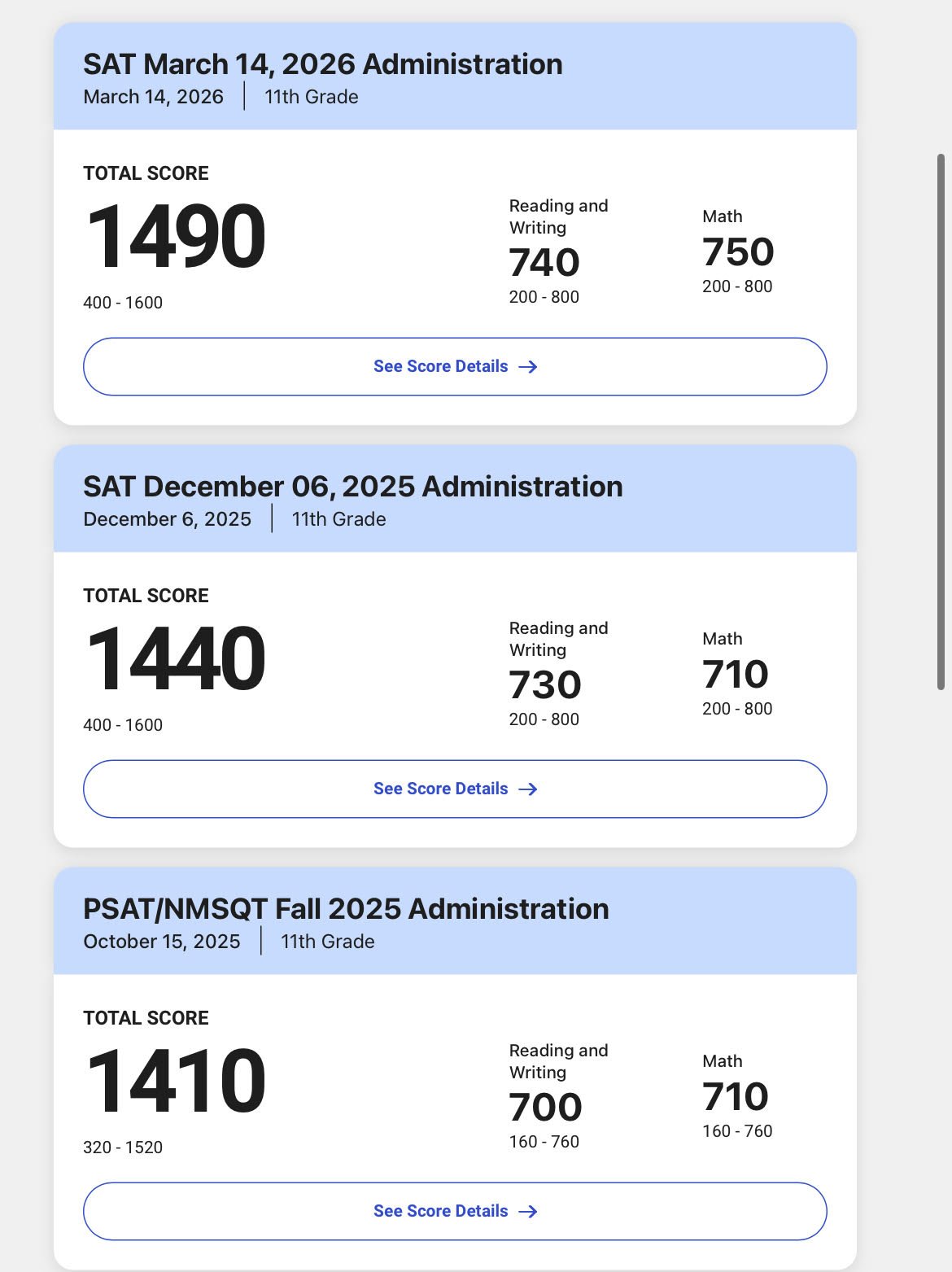Real SAT/ACT Results